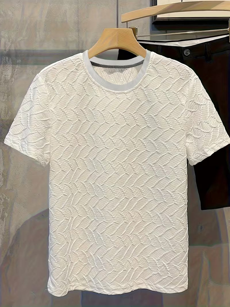 Men’s Luxury Jacquard Short Sleeve T-Shirt – Slim Fit Round Neck, Breathable Fabric for Summer Casual & Daily Wear