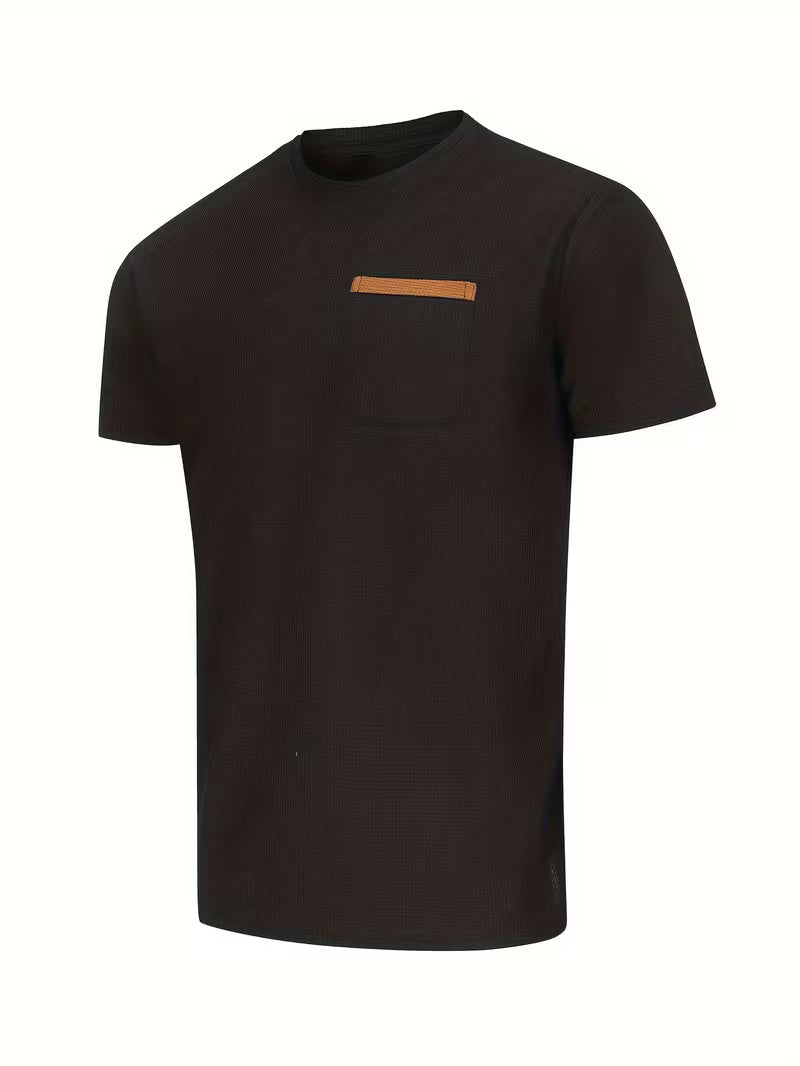 Men’s Waffle Knit Short Sleeve Tee – Solid Color Casual Summer T-Shirt, Round Neck, Textured Fabric, Machine Washable, Regular Fit for Teens & Young Adults